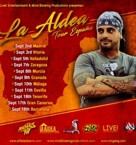 Al2 El Aldeano vendrá a España en el próximo mes de Septiembre. El artista cubano del archiconocido grupo Los Aldeanos presenta su gira "La Aldea Tour España 2016" que le llevará a un total de 11 escenarios en diferentes ciudades de la península y canarias.