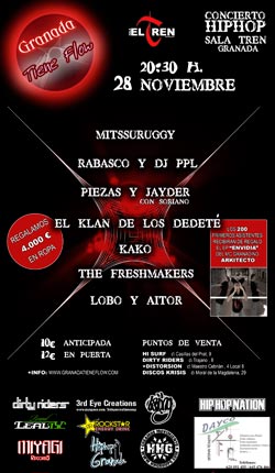 Este sábado, Granada tiene flow. El 28 de Noviembre es la fecha indicada en el calendario y 20:30h la hora indicada a partir de la cual en la Sala El Tren de Granada tendrá lugar uno de los grandes espectáculos de Rap de este 2009 de la ciudad andaluza.